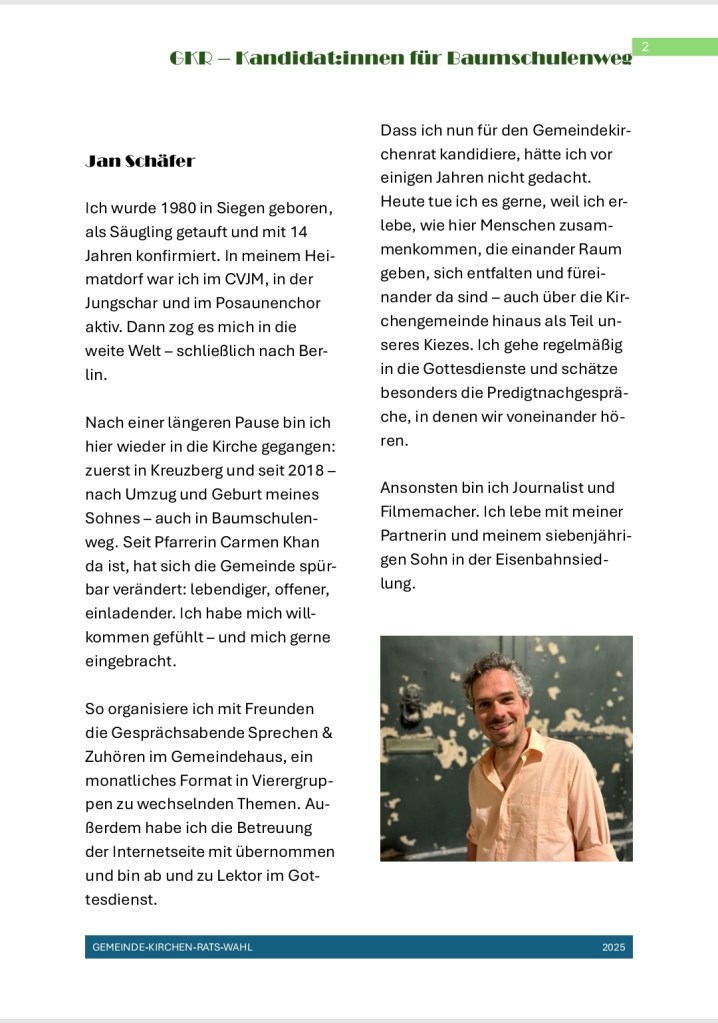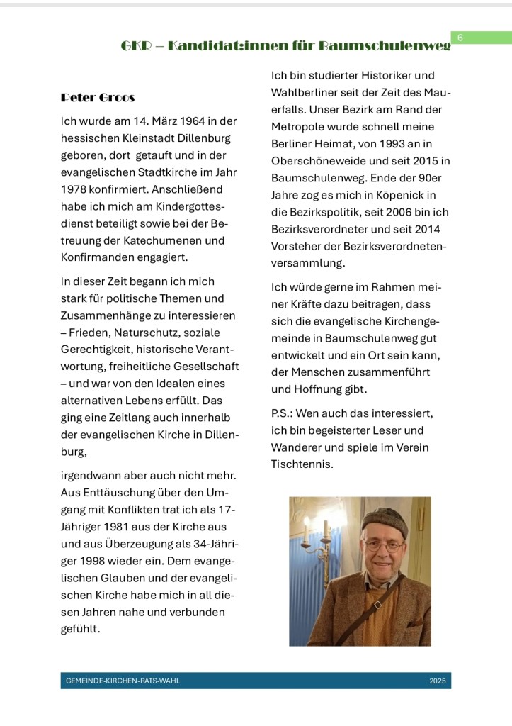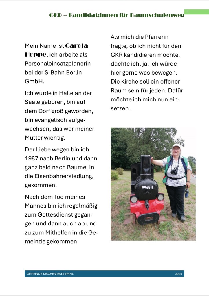 Am 30.11.2025 fand die Wahl zum Gemeindekirchenrat in der Gemeinde Baumschulenweg statt.